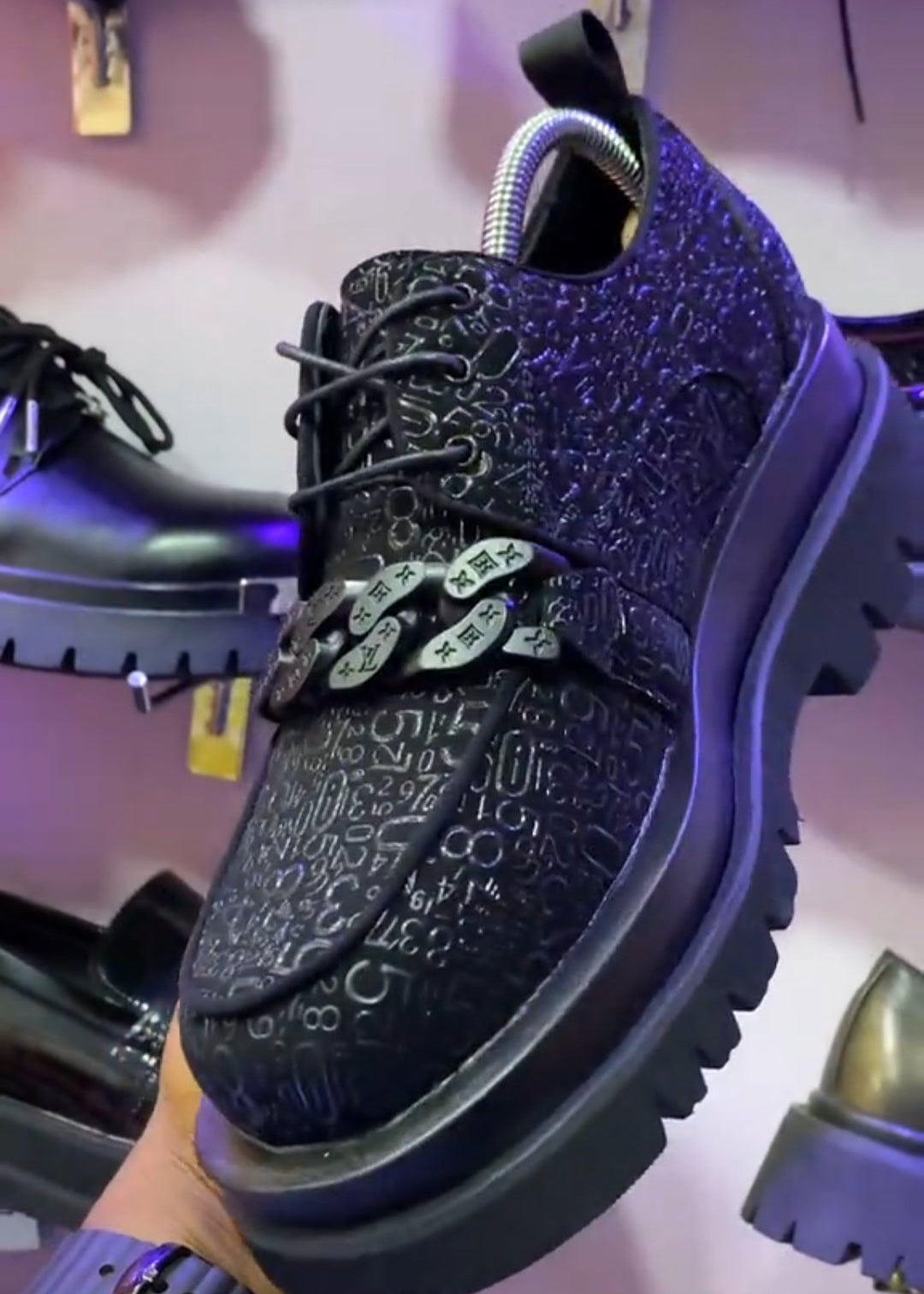 Men’s Casual Leather Shoes – Embossed Numbers/Letters & Chain