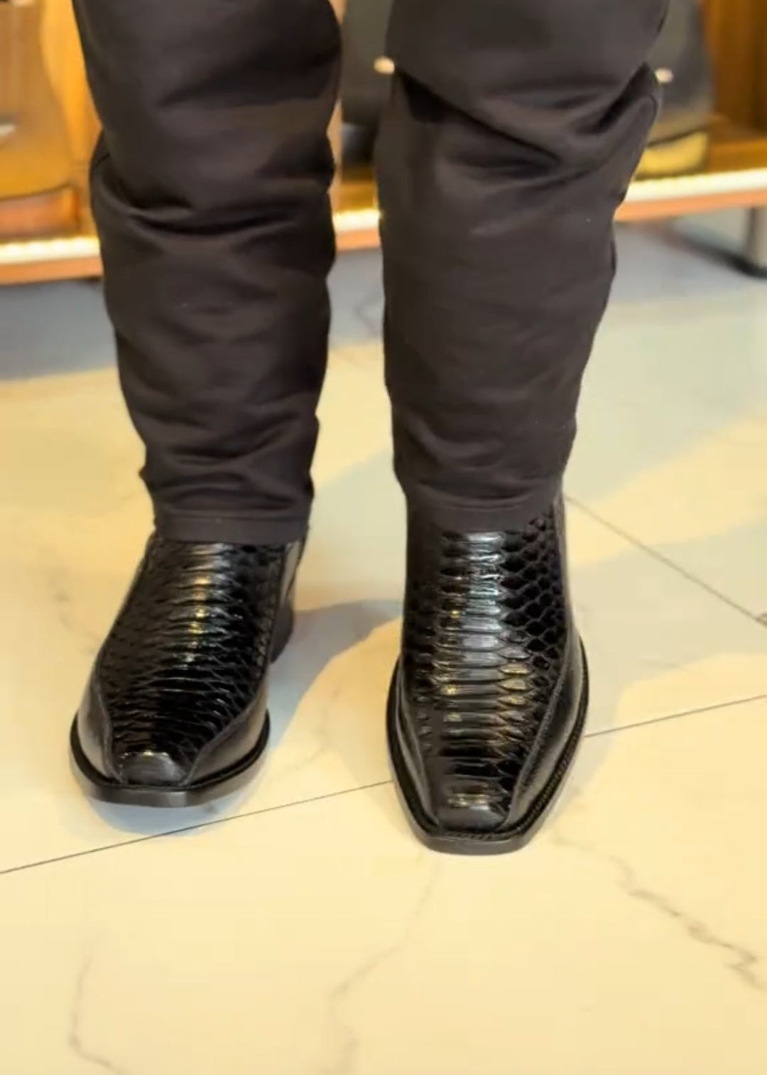 Men's Crocodile-Embossed Square-Toe Snake-Print Mid-Calf Western Cowboy Boots