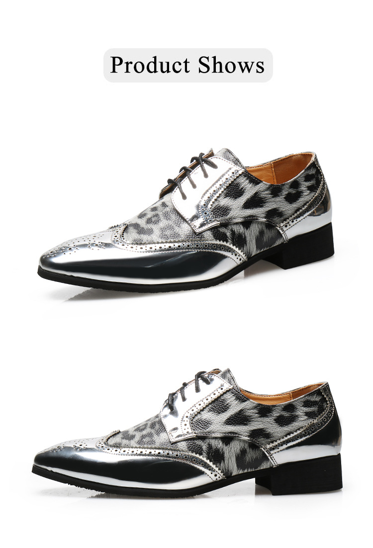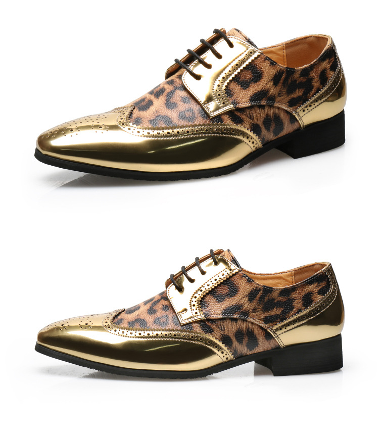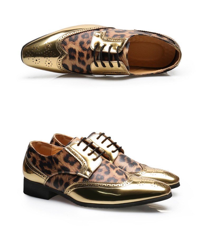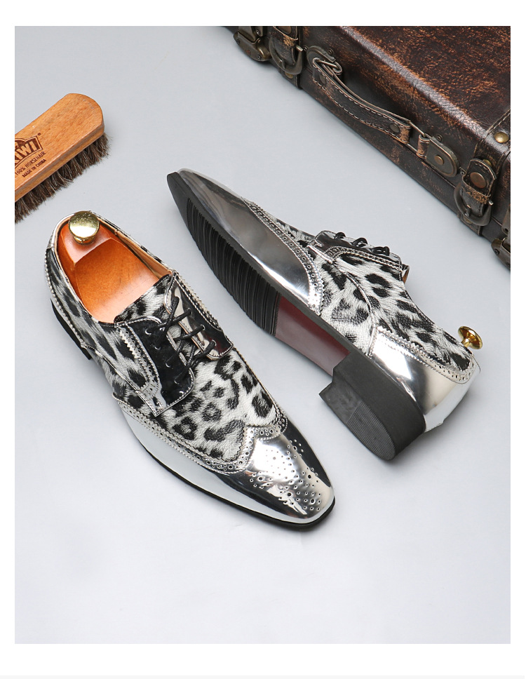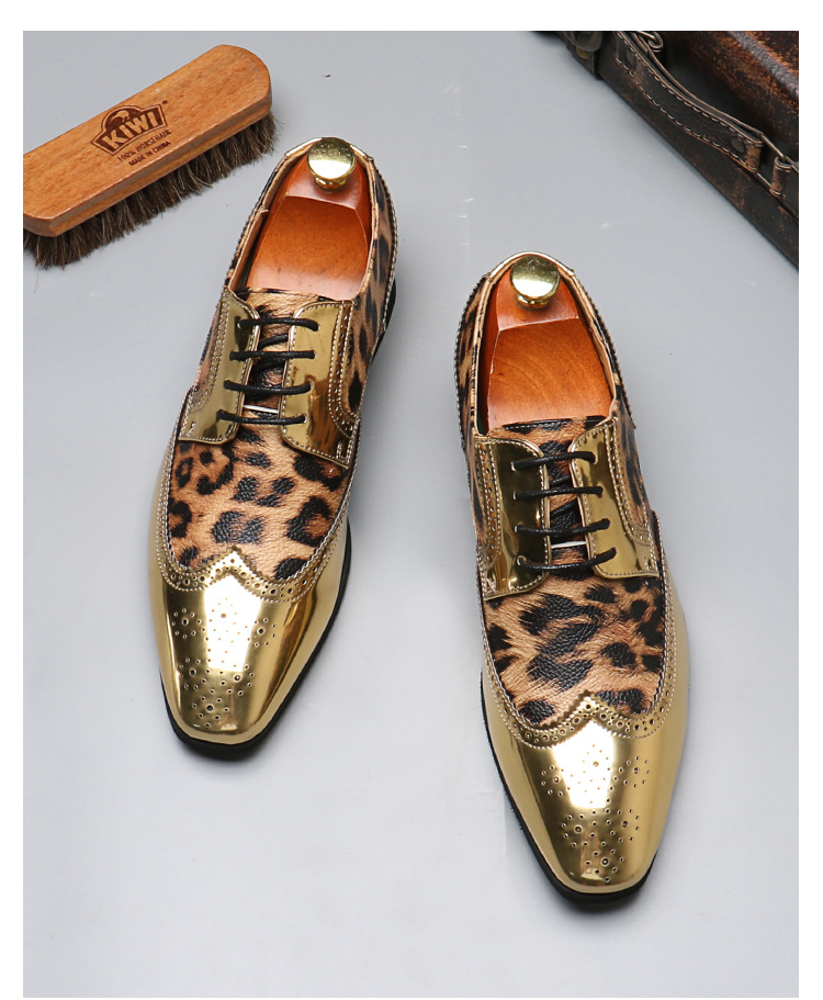 Men's leopard print lace-up leather shoes