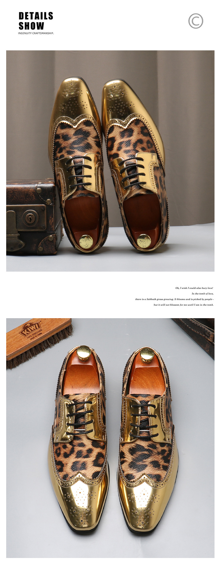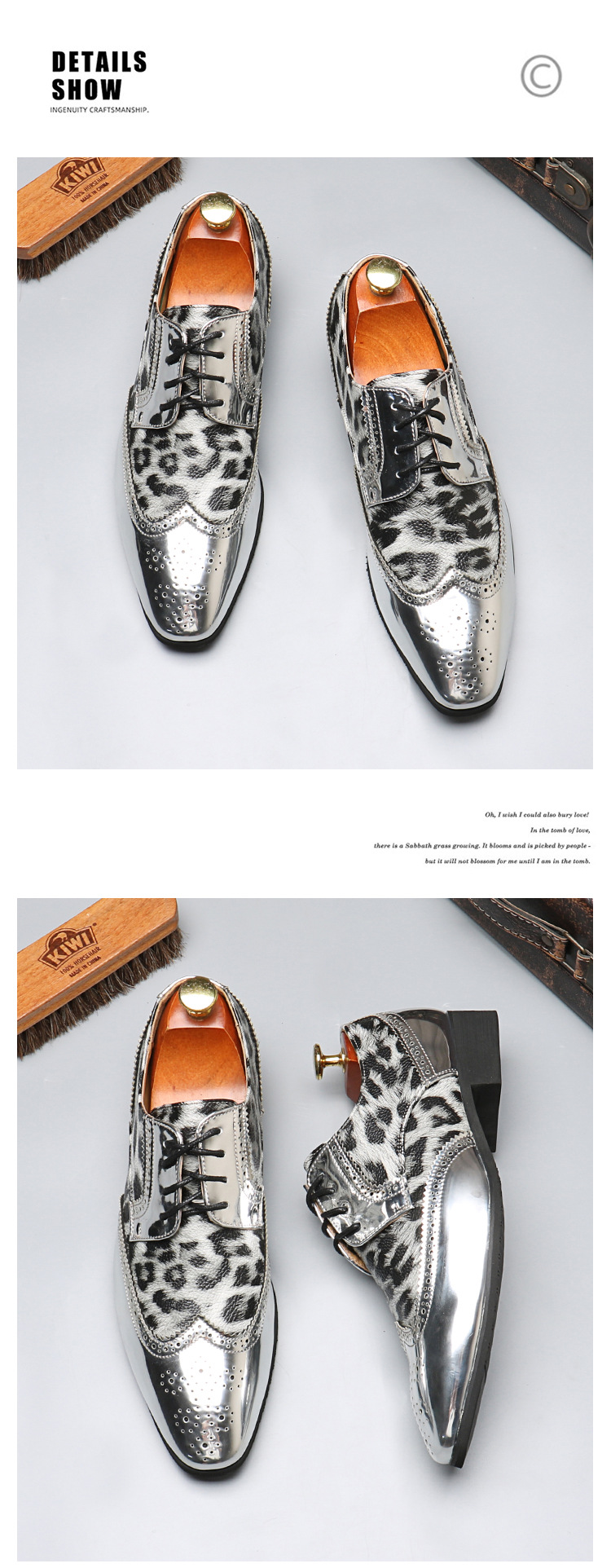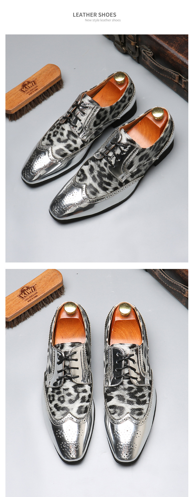 Men's leopard print lace-up leather shoes